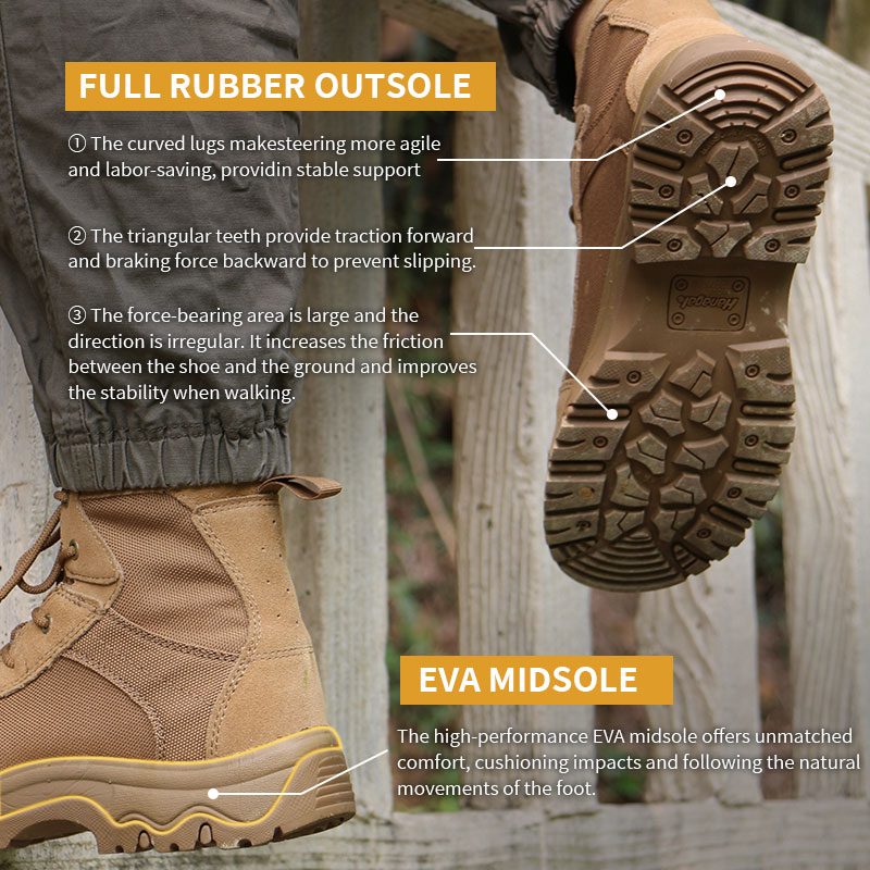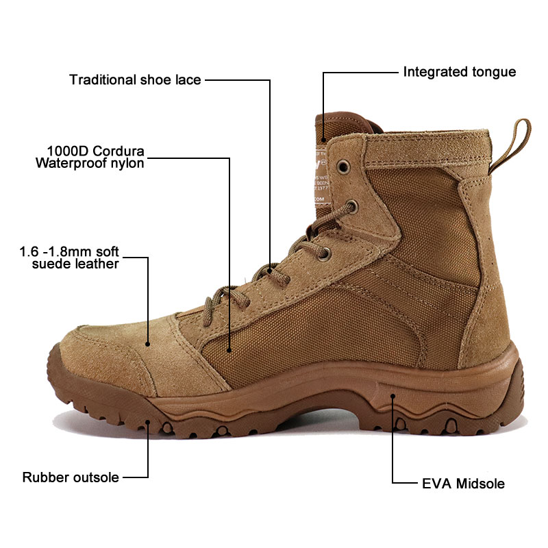 من الوديان الصخرية إلى الكثبان الرملية الفضفاضة، تم تصميم أحذية Cordura التكتيكية الصحراوية المصنوعة من نسيج المطاط لتؤدي الأداء. يقاوم الجزء العلوي من Cordura التآكل والتمزق مع الحفاظ على الوزن منخفضًا، ويوفر النعل الخارجي المطاطي متعدد الاتجاهات ثباتًا على الأسطح الصحراوية غير المتوقعة. أرسل لنا استفسارًا للحصول على مزيد من المعلومات.