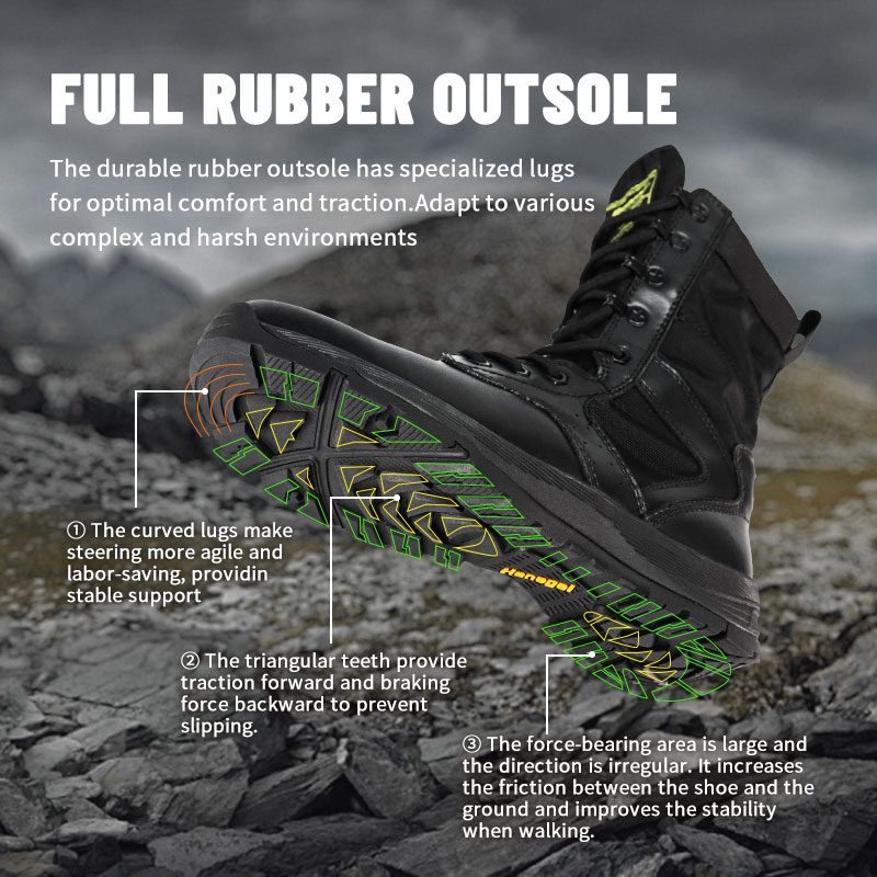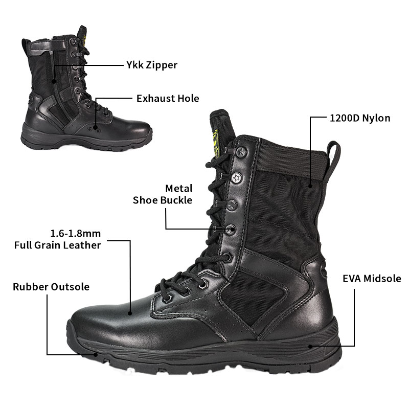 أحذية الشرطة ذات النعل الخارجي المطاطي بالكامل متوفرة في المخزون وجاهزة للشحن، مع طلبات تبدأ من 10 أزواج فقط. لمزيد من التفاصيل أو الاستفسارات عن الأسعار، لا تتردد في التواصل معنا في أي وقت. التخصيص متاح أيضًا مع الحد الأدنى للطلب وهو 800 زوج.ويتميز هذا النموذج بالمزايا التالية: