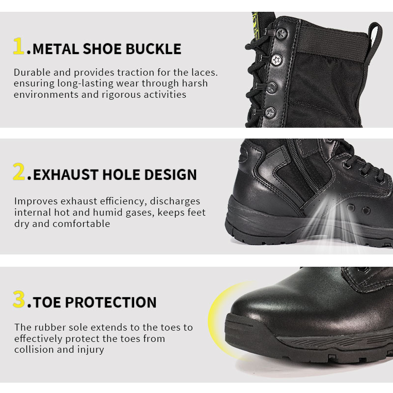 تم تصميم أحذية الشرطة ذات النعل الخارجي المطاطي بالكامل للأفراد العسكريين وعشاق الهواء الطلق، وتوفر ملاءمة مريحة وملتفة مع ثبات كبير على الأراضي الوعرة. لسان مقوى يحافظ على البقايا خارجًا ويبقى في المنتصف، بينما يتحمل الجزء العلوي من الجلد السويدي والنايلون المتين الظروف القاسية. سحاب YKK يجعل عملية الارتداء والخلع سهلة - حتى تتمكن من الاستمرار في التركيز على المهمة المقبلة.