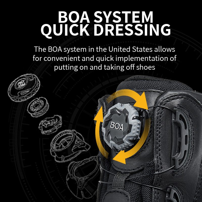 نظام BOA يجعل التشغيل/الإيقاف سهلاً: لف سريع للشد، سحب للتحرير. لا الأربطة، لا متاعب.