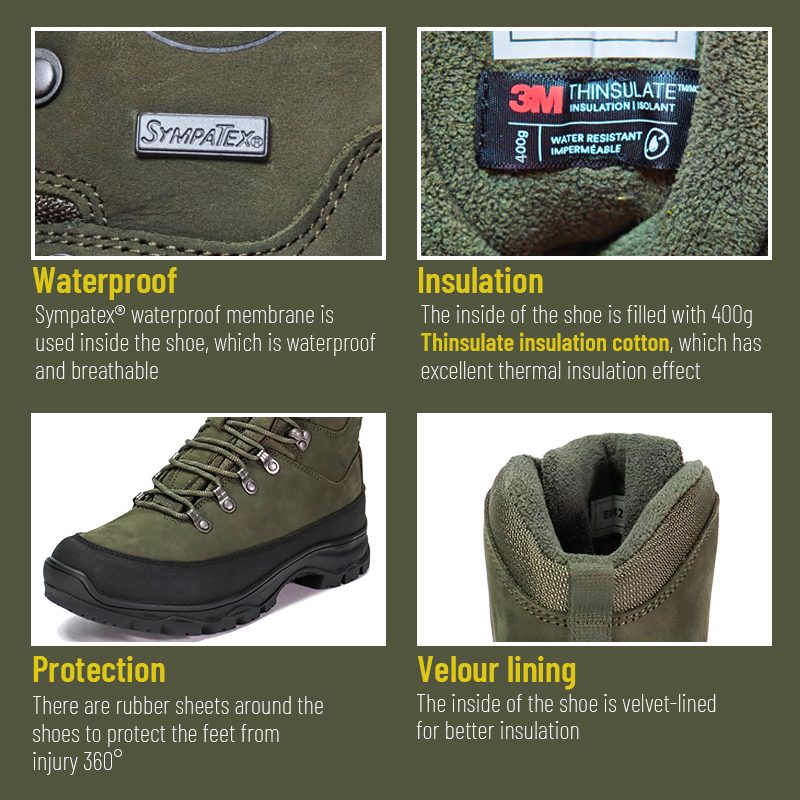 تتوفر أحذية Sympatex المقاومة للماء والعازلة للصيد للتخصيص في الألوان والمواد والتفاصيل، مع حد أدنى للطلب يبلغ 800 زوج، وهي مثالية للتعاون مع العلامات التجارية والمشتريات الجماعية. وتتميز أحذية الصيد هذه بالمزايا التالية: