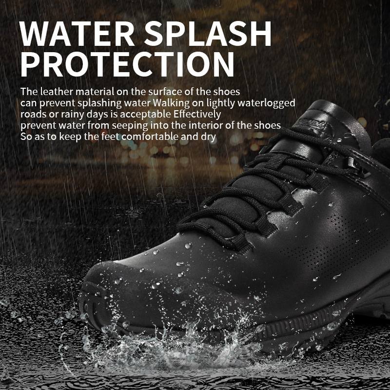 الجزء العلوي من الجلد يطرد الماء المتناثر، لذلك يمكنك المشي بثقة على الطرق الرطبة أو الأيام الممطرة. إنه يحافظ على الرطوبة بشكل فعال، مما يضمن بقاء قدميك جافة ومرتاحة.