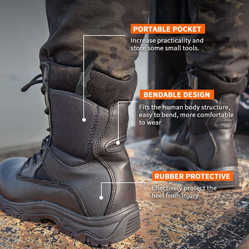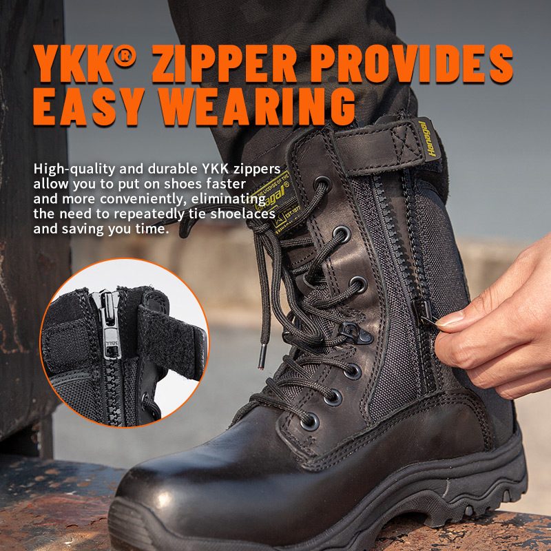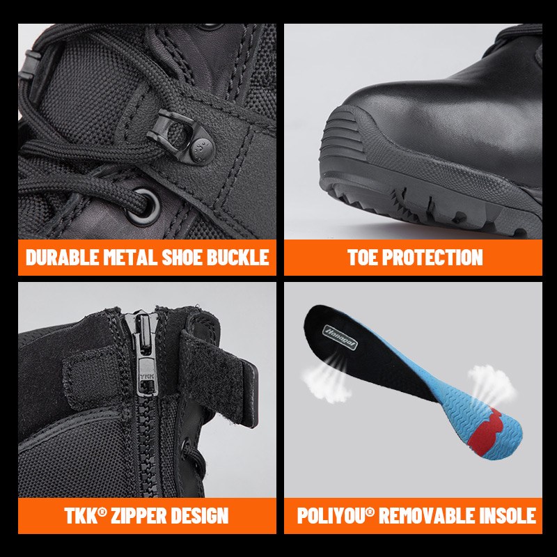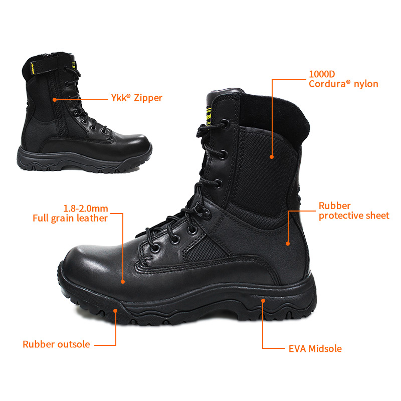تتوفر أحذية الشرطة المصنوعة من الجلد المحبب بالكامل بسحاب YKK للتخصيص في الألوان والمواد والتفاصيل، مع حد أدنى للطلب يبلغ 800 زوج، وهي مثالية للتعاون مع العلامات التجارية والمشتريات الجماعية. وتتميز أحذية الصيد هذه بالمزايا التالية: